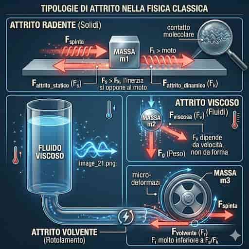 In conclusione, l’ attrito non è solo un “disturbo” da eliminare, ma una forza fondamentale che rende possibile la nostra vita quotidiana. Senza di esso non potremmo camminare, le macchine non potrebbero frenare e gli oggetti non resterebbero fermi sui tavoli. La fisica classica ci fornisce gli strumenti per distinguere tra le sue varie forme e per calcolarne gli effetti con precisione. Comprendere la differenza tra attrito radente, viscoso e volvente ci permette di dominare il mondo macroscopico con saggezza tecnologica. L’attrito è il limite che definisce il movimento e, allo stesso tempo, la condizione che lo rende controllabile.