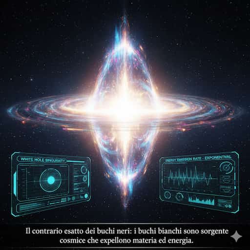 Una notizia straordinaria scuote la comunità scientifica internazionale. Alcuni ricercatori hanno individuato anomalie energetiche compatibili con i modelli teorici dei buchi bianchi. Questi oggetti sono considerati l’esatto opposto dei mostri gravitazionali che conosciamo bene. Se un buco nero è una regione da cui nulla può uscire, un buco bianco è una regione in cui nulla può entrare. La materia e la luce possono solo essere espulse violentemente verso l’esterno. Per decenni sono stati considerati semplici curiosità matematiche senza riscontro reale. Oggi, nuove analisi suggeriscono che potrebbero essere la fase finale della vita di un buchi neri.