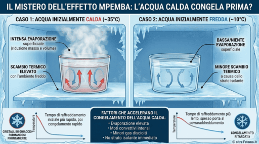L’articolo esplora il fenomeno fisico chiamato effetto Mpemba analizzando le cause termodinamiche che permettono all’acqua calda di congelare prima di quella fredda in condizioni specifiche.