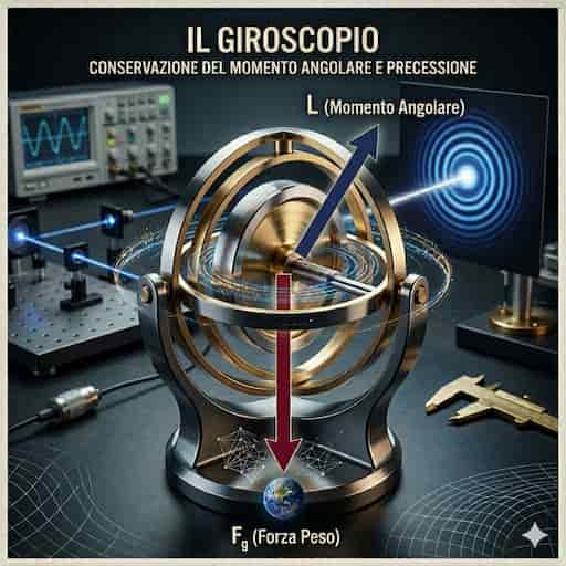 Nella struttura formale della meccanica, il giroscopio è definito come un corpo rigido a simmetria assiale che ruota rapidamente attorno al proprio asse di simmetria. Questo dispositivo è l’emblema della dinamica rotazionale all’interno della Fisica classica, poiché permette di osservare macroscopicamente gli effetti dei vettori momento angolare e momento delle forze. Il principio cardine che ne governa il funzionamento è la legge di conservazione del momento angolare, la quale stabilisce che, in assenza di momenti di forze esterne, il momento angolare di un sistema rimane costante in modulo, direzione e verso. Quando il rotore del giroscopio viene messo in rotazione ad alta velocità, acquisisce una stabilità inerziale tale da opporsi strenuamente a qualsiasi tentativo di variare l’orientamento del suo asse, una proprietà nota come rigidità spaziale.