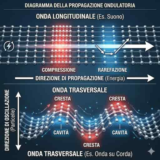 Quando le oscillazioni si propagano attraverso un mezzo, assumono la forma di onde meccaniche, classificabili in base alla direzione del movimento particellare. Nelle onde trasversali, le particelle del mezzo oscillano perpendicolarmente alla direzione di propagazione dell’energia stessa. Un esempio classico è rappresentato dalle onde che si generano lungo una corda tesa o sulla superficie di un liquido in quiete. Nelle onde longitudinali, invece, le particelle vibrano parallelamente alla direzione del fronte d’onda, creando zone di compressione e rarefazione. Il suono è l’esempio più comune di onda longitudinale che attraversa fluidi e solidi nel nostro ambiente quotidiano.
